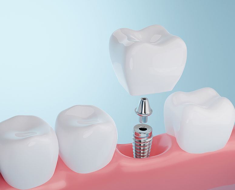 Following this healing period, our dentist will place the dental implant restoration, or replacement tooth, which fits on top of the implant post. Depending on which teeth are missing and your personal dental needs, your implant restoration might be a dental crown, dental bridge, or a complete or partial denture. Each dental implant restoration is custom made to fit your smile comfortably and aesthetically.
